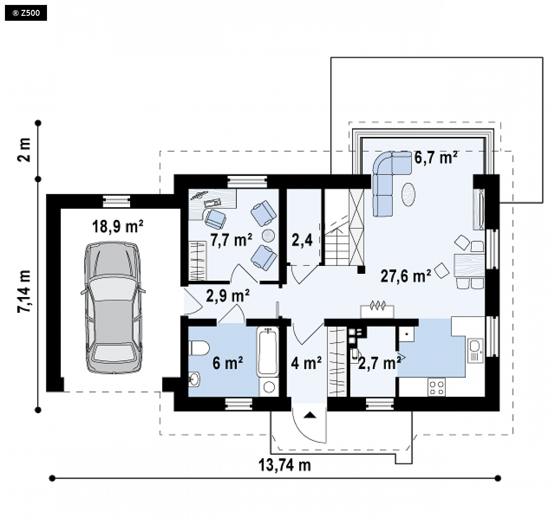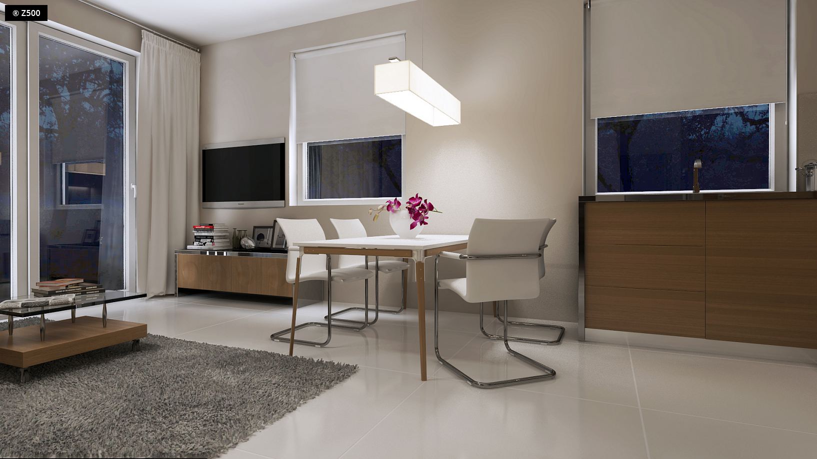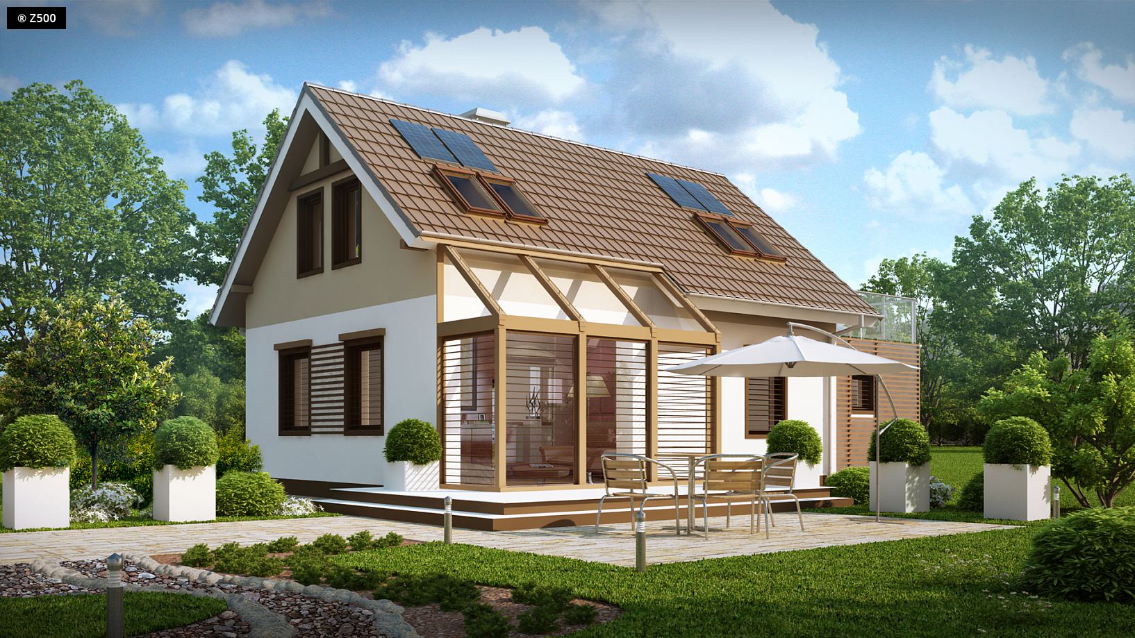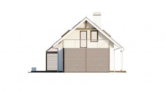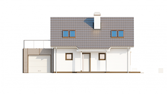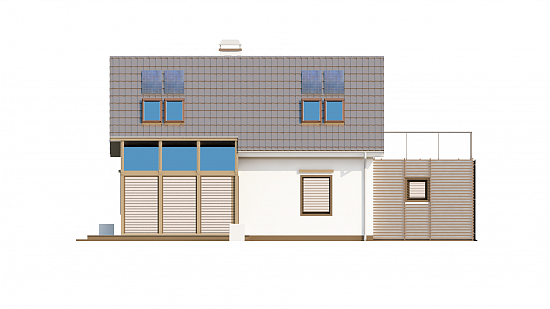 Z220 w wersji lustrzanej to dom o prostej bryle z prostym dwuspadowym dachem i jednostanowiskowym garażem dzięki czemu jest tani w budowie. Ogród zimowy stanowi przedłużenie wnętrza i łączy z naturą. Drewniane elementy elewacji wzbogacają walory estetyczne i wizualne. Taras nad garażem stanowi strefę relaksu. Wejście do budynku zostało osłonięte poprzez przedłużenie połaci dachowej, którą wsparto na dwóch słupkach. Na parterze strefę dzienną tworzy salon połączony bezpośrednio z kuchnią i wyjściem na oranżerię od strony ogrodu . Lewą część budynku stanowi gabinet jako dodatkowy pokój na parterze oraz spora łazienka z wanną i schowek. Dużym udogodnieniem jest bezpośrednie przejście do garażu, co ułatwi np. wznoszenie zakupów. Na poddaszu zlokalizowano strefę nocną z trzema wygodnymi sypialniami, łazienką i garderobą. Projekt Z220 przypadnie do gustu wszystkim tym, którzy cenią praktyczność i funkcjonalność. Pełna gama pomieszczeń sprawi, że każdy z domowników znajdzie tu miejsce dla siebie.