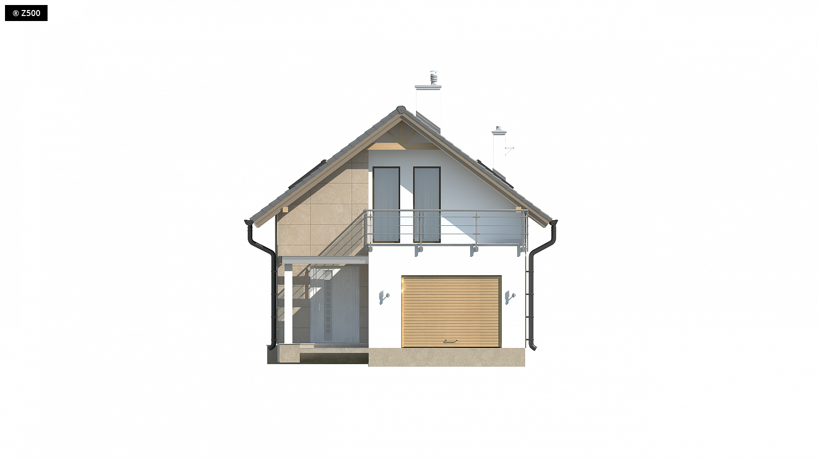 Z299 to projekt domu z poddaszem użytkowym, dwuspadowym dachem i garażem jednostanowiskowym. Tworzy go prosta bryła, a ciepłe kolory na elewacjach podkreślają charakter oraz styl budynku. Parter to strefa dzienna domu. Zlokalizowano tu przestronny salon, który został połączony jednoprzestrzennie z jadalnią i kuchnią. W centralnej części domu umieszczono hol, który jest łącznikiem pomiędzy poszczególnymi pomieszczeniami, a dodatkowo posiada bezpośrednie przejście do garażu. Na parterze jest także wc, spore pomieszczenie gospodarcze oraz sień z miejscem na szafę wnękową.Piętro to część nocna domu. Zlokalizowano tu dużą sypialnię dla rodziców z osobną łazienkę i garderobę. Dwa pokoje dziecięce posiadają wyjścia na balkon, a łazienka pomieści prysznic i wannę. Projekt Z299 to idealna propozycja dla osób poszukujących domu na wąską działkę.