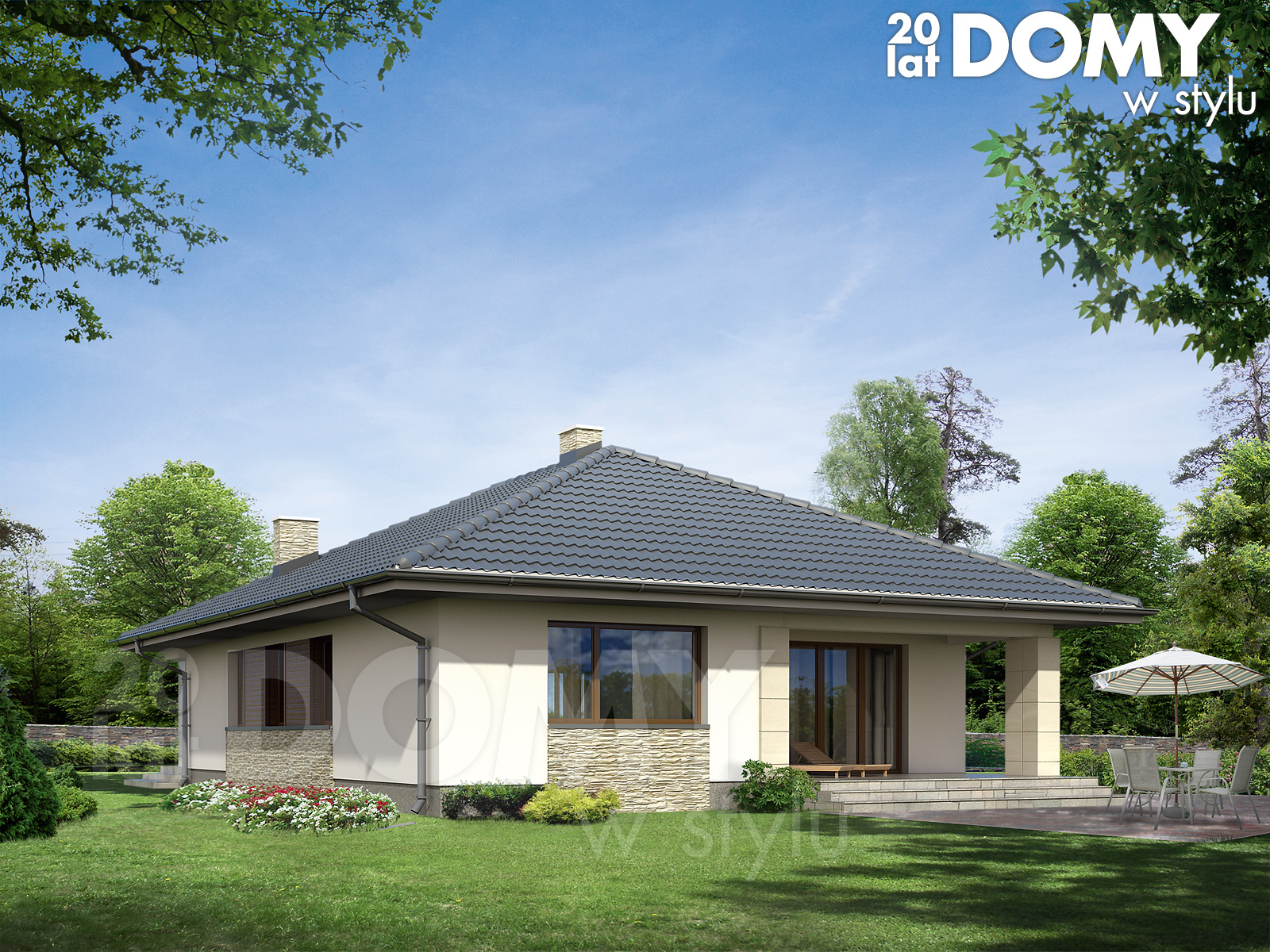 Słoneczny, przyjazny i niezwykle wygodny – tak w kilku słowach można scharakteryzować projekt Aster. Dzięki umiejętnemu połączeniu kamienia i drewna tradycyjna bryła budynku nabrała nowoczesnego charakteru. Budynek odznacza się przemyślanym układem funkcjonalnym; świadczy o tym obecność: przestronnego salonu, zadaszonego tarasu, sporej jadalni, spiżarni przy kuchni oraz trzech wygodnych pokoi.