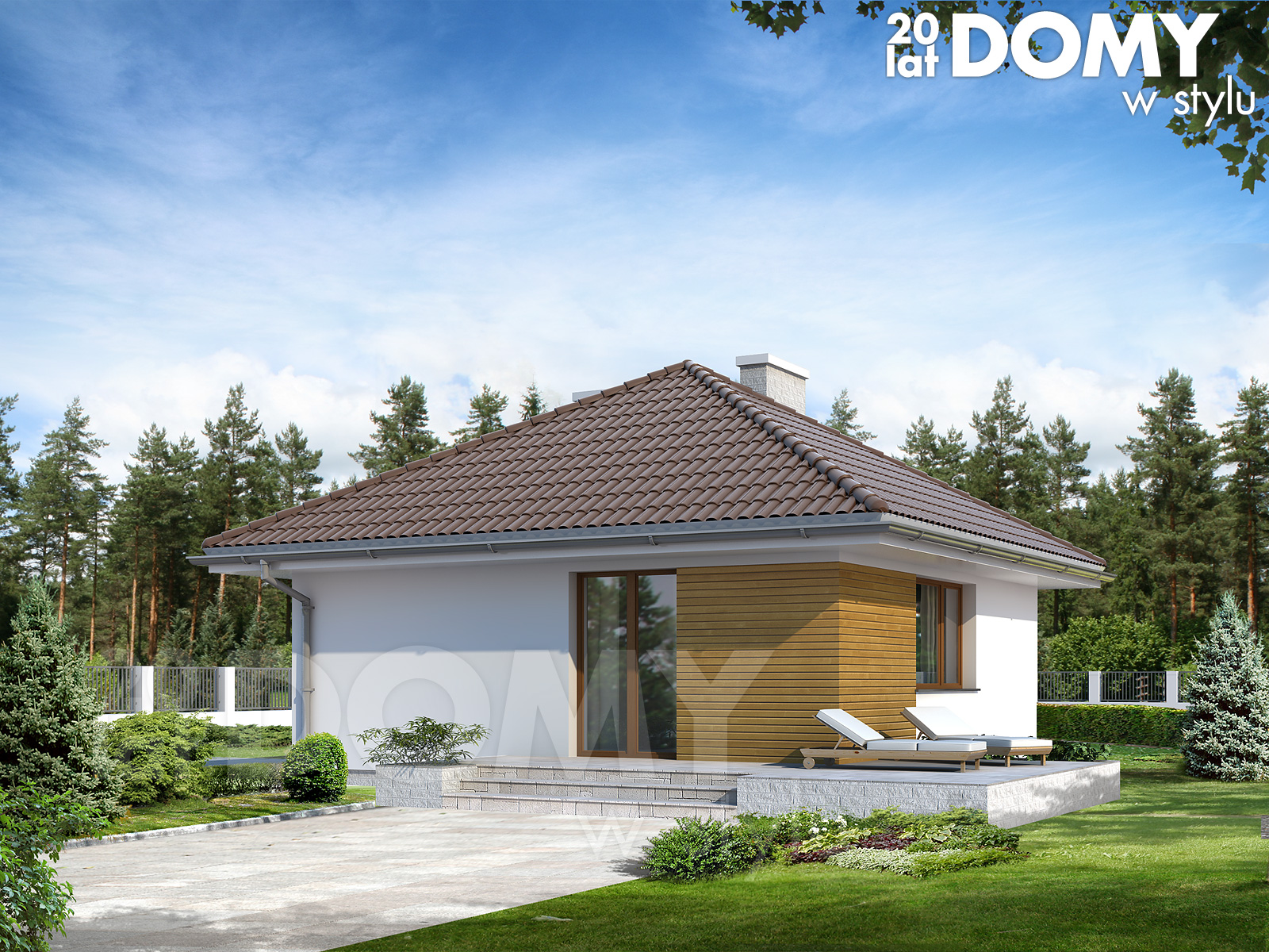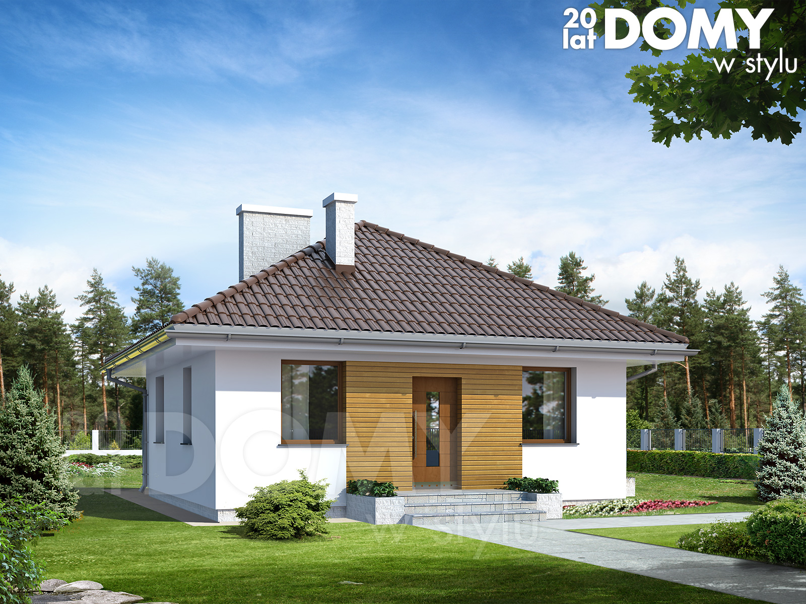 Imbir to mały, ale wygodny dom, idealny dla małej rodziny. Z powodzeniem może pełnić funkcję domu mieszkalnego oraz letniskowego. Jego niewielka powierzchnia, prosta bryła oraz oszczędna elewacja czynią go ekonomicznym w budowie oraz użytkowaniu. Do bryły domu przylega taras dostępny z pokoju dziennego. Projekt charakteryzuje się przemyślanym układem wewnątrz. W środku znajduje się pokój dzienny z kominkiem połączony z aneksem kuchennym, sypialnia, łazienka oraz kotłownia dostępna z wiatrołapu.