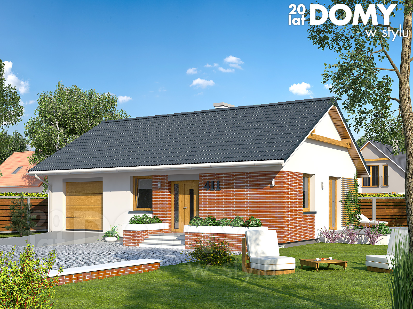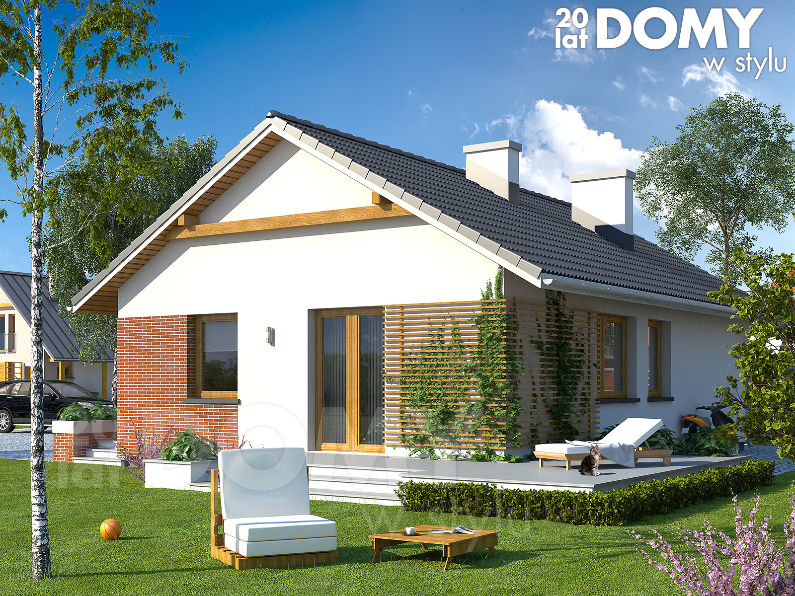 Imbir 2 to dom parterowy o gabarytach mieszkania, zaprojektowany z myślą o potrzebach 2-osobowej rodziny, która pragnie się cieszyć niczym nieskrępowaną swobodą. Program funkcjonalny jest przejrzysty i optymalnie zaprojektowany. Ze względu na sporą kotłownię można zastosować ogrzewanie na paliwo stałe. Zwarta bryła, dwuspadowy dach, garaż w bryle budynku czynią dom tanim w realizacji. Projekt godny polecenia jako alternatywa dla małego mieszkania w budynku wielorodzinnym.