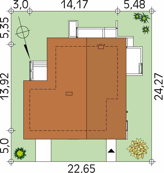 Dach: dwuspadowy, nachylenie 23°, pokrycie z dachówki