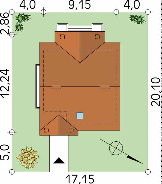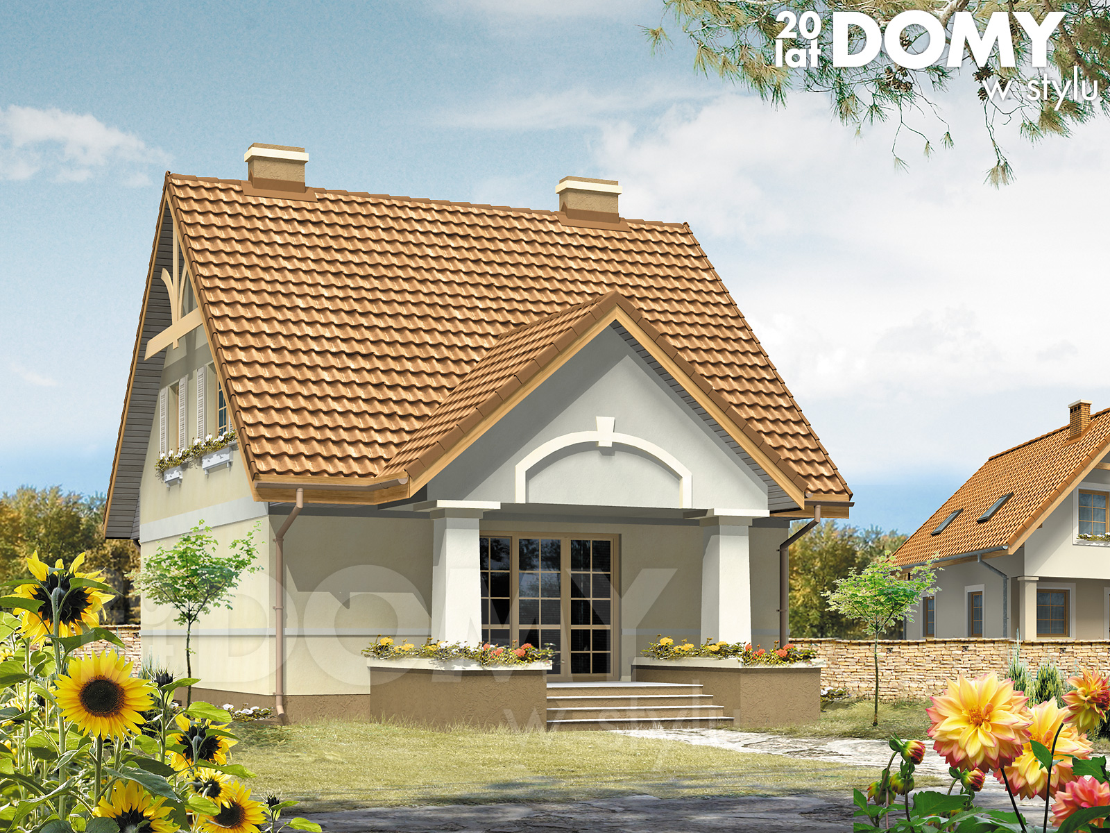 Dach: dwuspadowy, nachylenie 45°, pokrycie z dachówki
