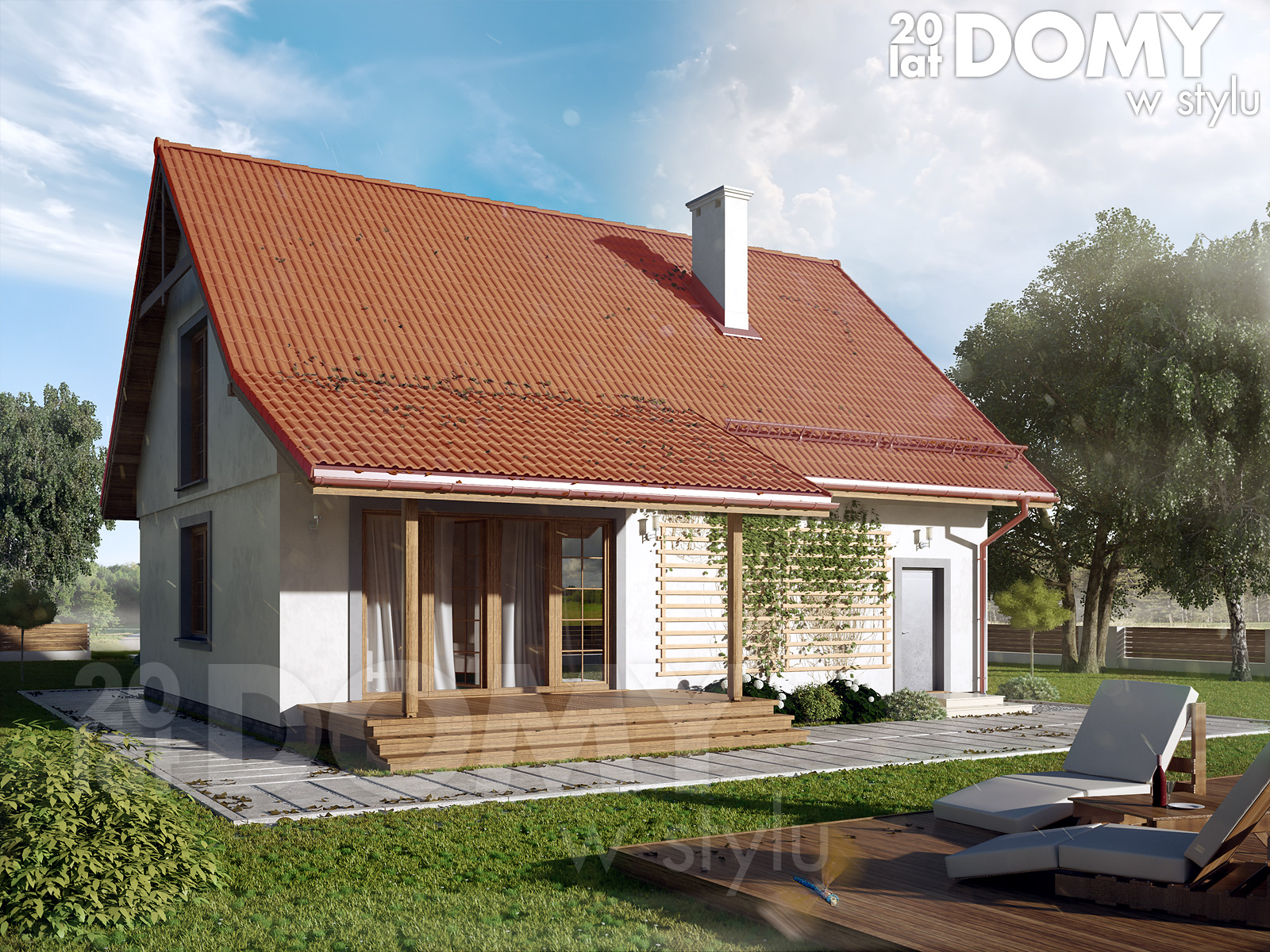 Dach: dwuspadowy, nachylenie 42°, pokrycie z dachówki ceramicznej