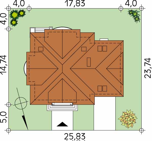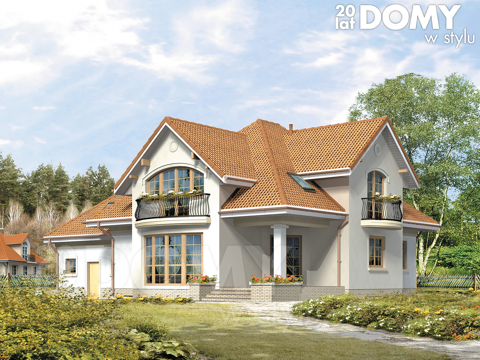 Dach: wielospadowy, nachylenie 40°, pokrycie z dachówki ceramicznej