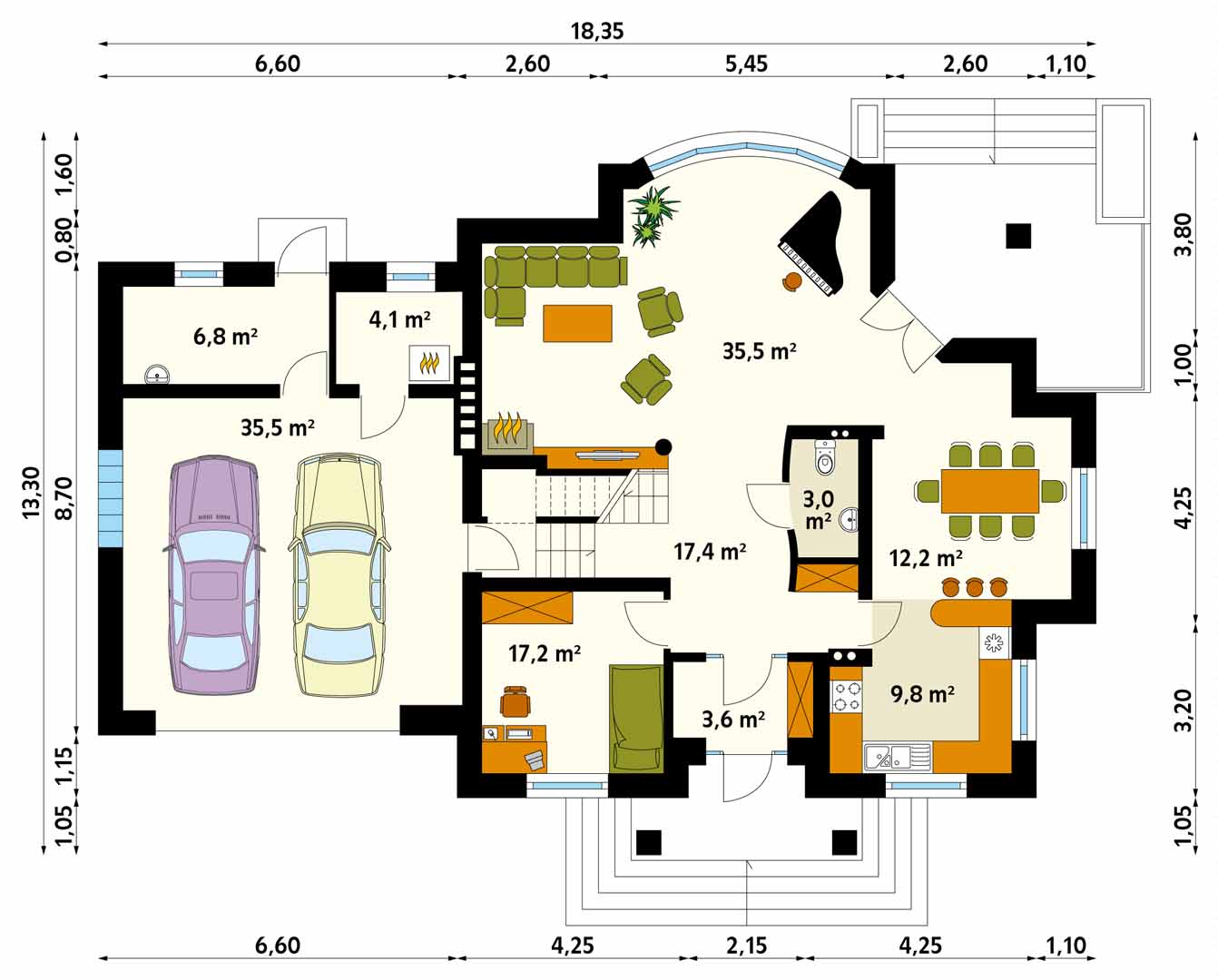 Reprezentacyjny dom o przestronnym wnętrzu. Zaprojektowany dla 4-osobowej rodziny. Przestronny układ funkcjonalny parteru zapewni komfortowe użytkowanie. Na poddaszu zaprojektowano sypialnię rodziców z oddzielną garderobą oraz łazienką.