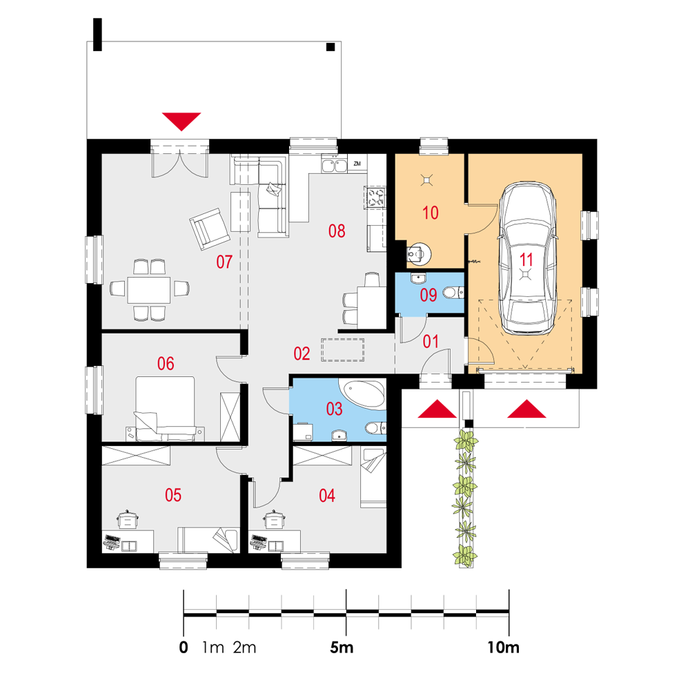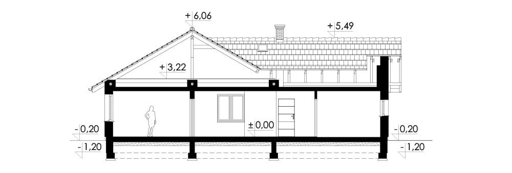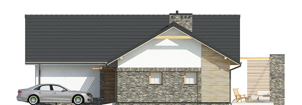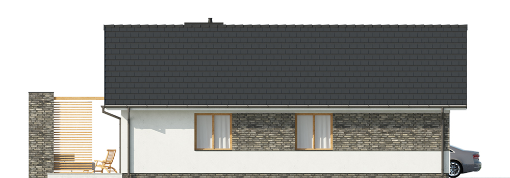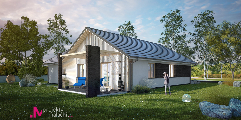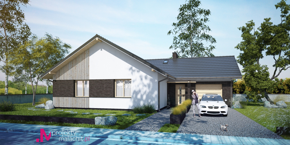 Dom jednorodzinny, wolnostojący, z poddaszem nieużytkowym i garażem. Na układ funkcjonalny składają się salon z jadalnią i wyjściem na taras, 3 pokoje, kuchnia, łazienka, WC, garaż, pomieszczenie gospodarcze.