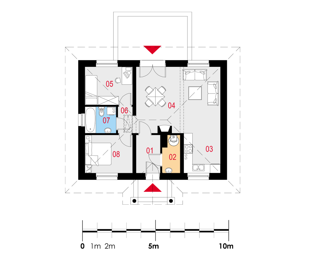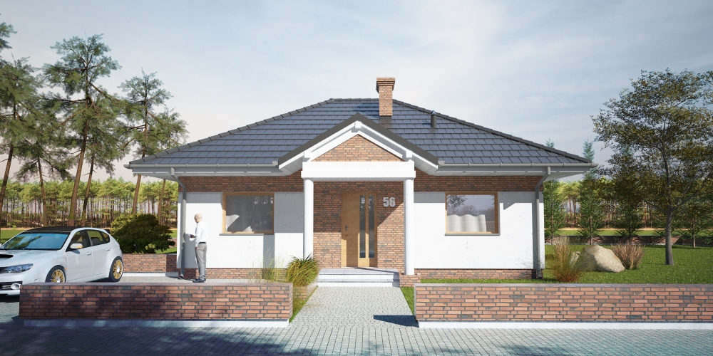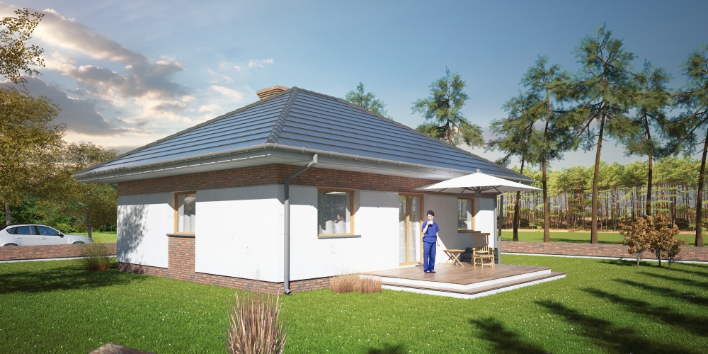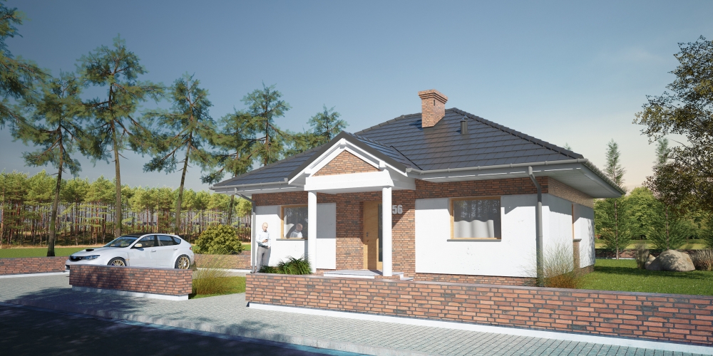 Dom jednorodzinny, wolnostojący, z poddaszem nieużytkowym. Na układ funkcjonalny składają się salon, 2 pokoje, kuchnia, łazienka, pomieszczenie gospodarcze.