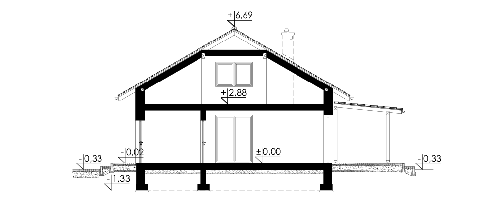 Dach: dwuspadowy, konstrukcja drewniana, pokryty dachówką ceramiczną, nachylenie 30°