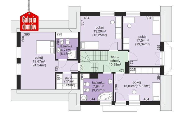Dach: dwuspadowy, nachylenie 42°, pokrycie z dachówki ceramicznej lub betonowej
