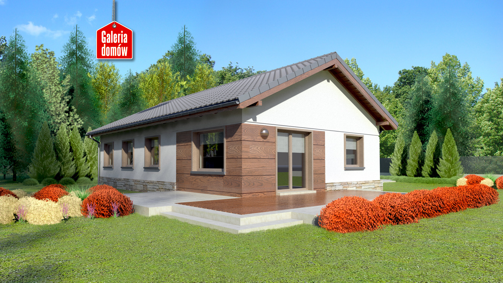 Możesz zrobić pierwszy krok w stronę samodzielności. Mali ludzie może też zrobią tu pierwsze kroki. Razem wejdziecie w nowy etap i zrobicie kolejne, już nie pod górę. Planowanie przyszłości w tym parterowym domu to przyjemność. To prawda, że czasem trudno znać wszystkie potrzeby z wyprzedzeniem. I prawda, że projektowanie własnej przyszłości zawsze jest wyzwaniem. Twoje wyzwania wrysowaliśmy w gotowy projekt. Kilka naszych pomysłów: garaż na dwa samochody (nie szkodzi, że na razie masz tylko jeden), naturalne materiały na zewnątrz. Tu się odnajdziesz. Krok po kroku!