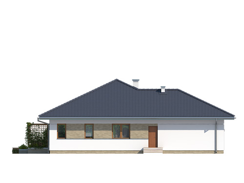 ARIEL 3 to to dom parterowy o powierzchni prawie 130 metrów kw., podpiwniczony. W piwnicy wygospodarowano kilka pomieszczeń gospodarczych na dowolny cel (np. pralnia, warsztat) oraz kotłownię na każdy rodzaj paliwa. Pomieszczenia mieszkalne zajmują cały parter. Jest tam przestronny salon łączony z jadalnią i otwarta kuchnia oraz trzy spore sypialnie, z czego jedna jest łączona z garderobą i łazienką. Z salonu prowadzi wyjście na taras. Na poziomie parteru zaplanowano dwustanowiskowy garaż, wjazd do niego sąsiaduje z zadaszonym wejściem do domu. Dom spełnia wymagania i potrzeby 4-osobowej rodziny, zapewniając jej komfortowe warunki. Stylem nawiązuje do tradycyjnego budownictwa, współczesnym akcentem jest ozdobna elewacja oraz nowoczesne materiały budowlane.