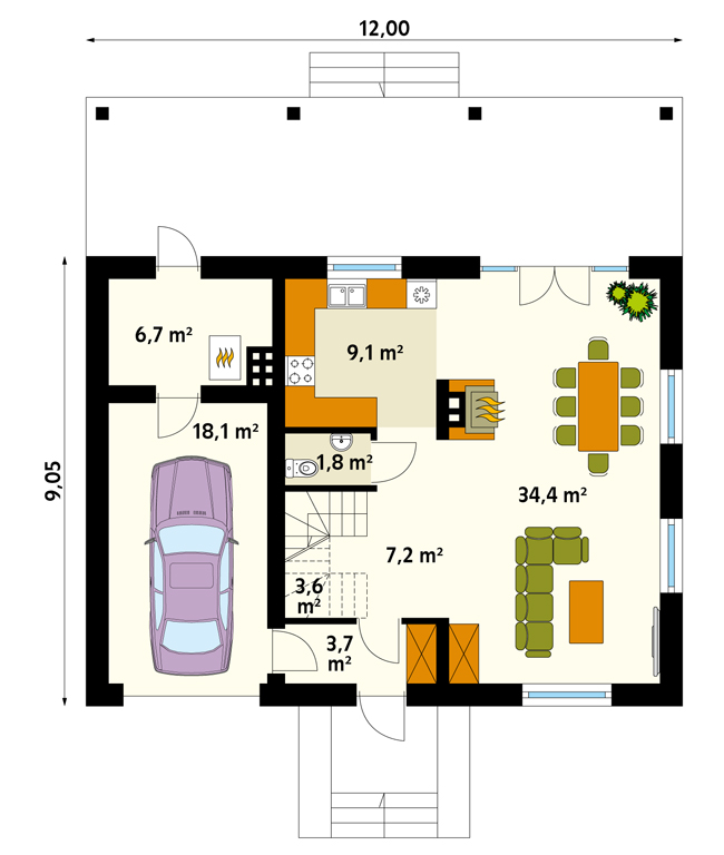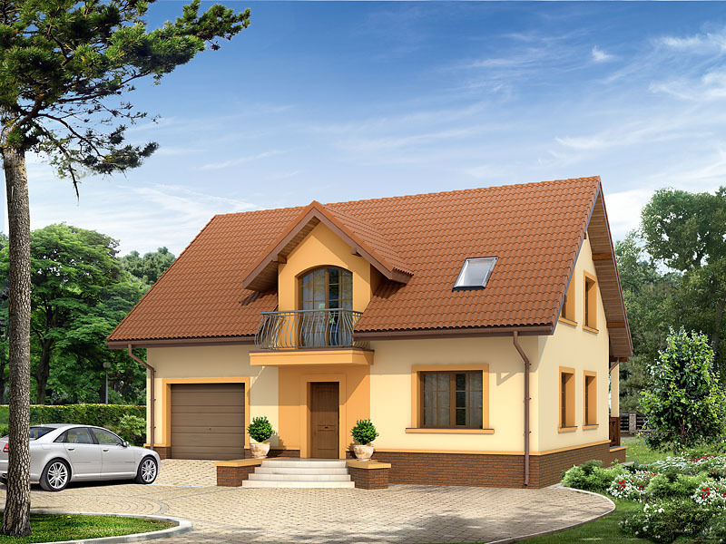 ARNIKA to optymalny dom z garażem w bryle budynku, zaprojektowany z myślą o 4-osobowej rodzinie. Niezaprzeczalnym atutem projektu jest zadaszony taras. Budynek charakteryzuje się wyraźnym podziałem na część dzienną, zlokalizowaną na parterze, oraz część nocną na poddaszu, składającą się z trzech sypialni. Kotłownia dostępna jest od strony garażu i ogrodu.