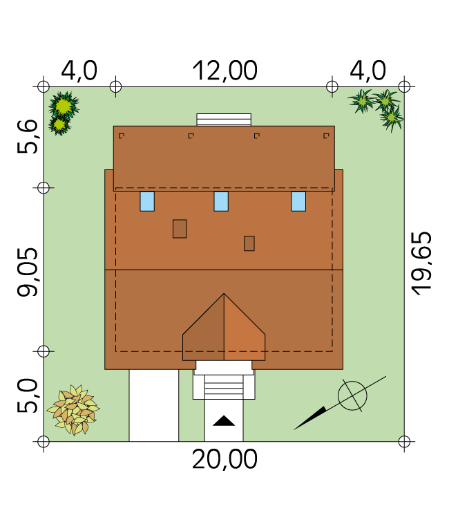 Dach: dwuspadowy, nachylenie 40°, pokrycie z dachówki ceramicznej