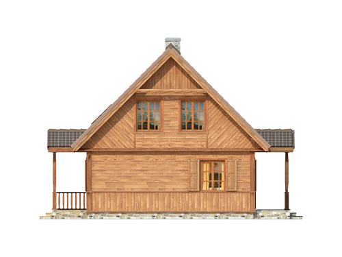 Jednorodzinny, mieszkalny dom drewniany, parterowy z użytkowym poddaszem. Budynek nawiązujący stylem do wyglądu tradycyjnej podlaskiej chaty. Projekt charakteryzuje się połączeniem współczesnego wnętrza z regionalnym charakterem elewacji. Na parterze znajduje się prosty wiatrołap, otwarta na salon kuchnia z jadalnią, dodatkowy pokój-gabinet, łazienka oraz spora kotłownia. Na poddaszu zlokalizowano trzy wygodne sypialnie, łazienkę i garderobę.
