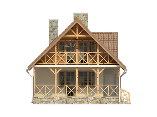Dach: dwuspadowy, nachylenie 45°, pokrycie typu lekkiego