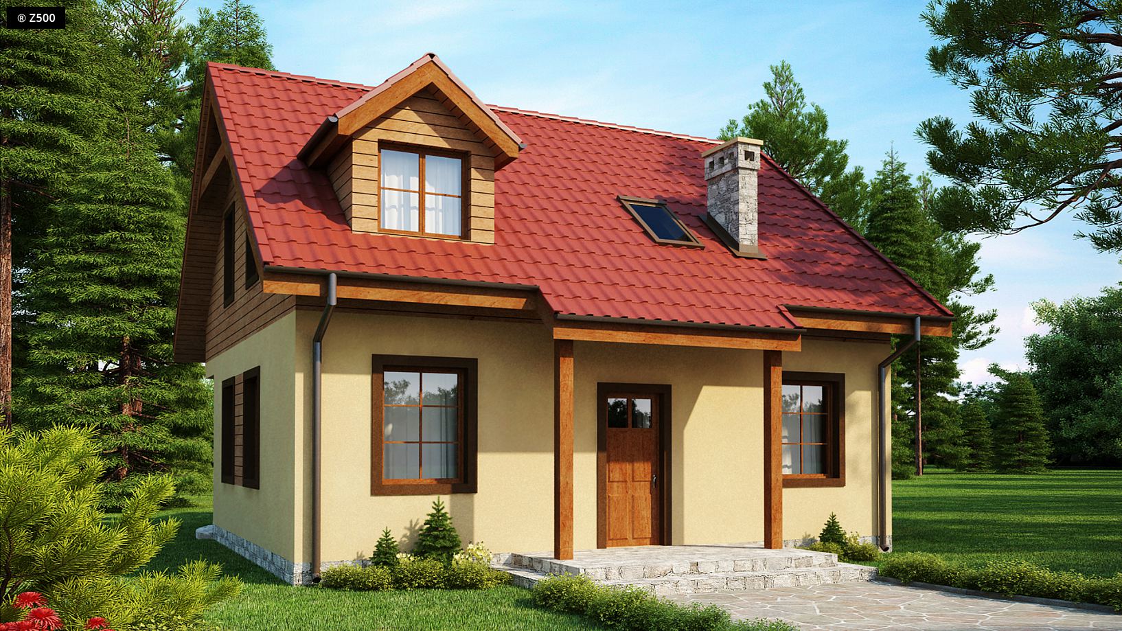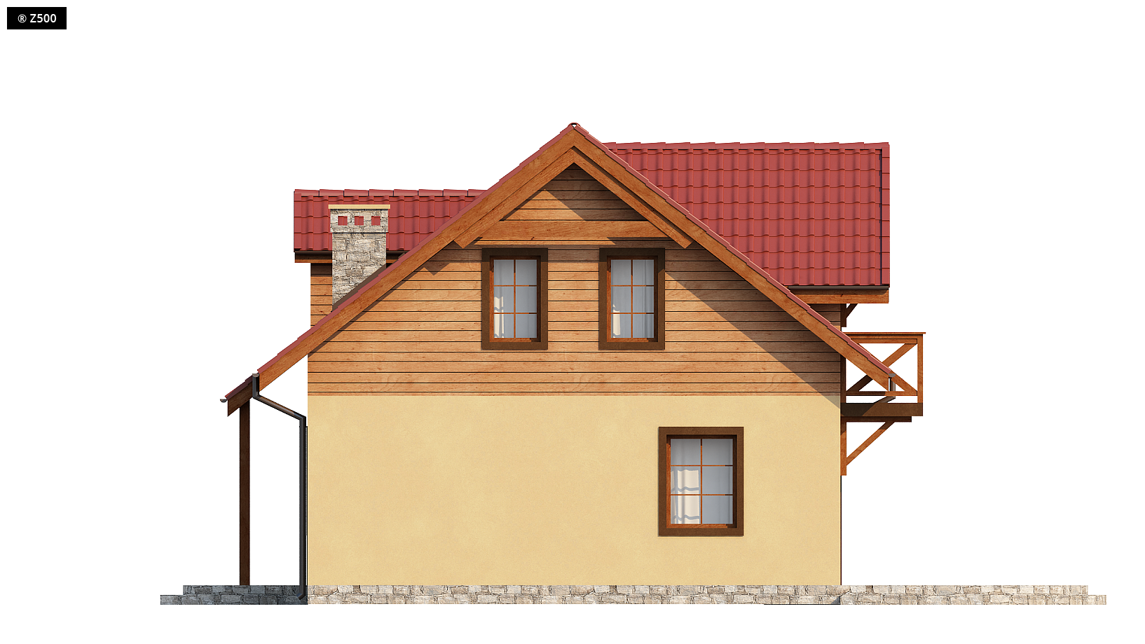 Projekt Z3 to niewielki ale wygodny dom o przyjemnym i ciepłym wyglądzie zewnętrznym, przeznaczony na działkę letniskową lub jako całoroczny dom mieszkalny. Na parterze zaprojektowano pokój dzienny z dwustronnym kominkiem, doskonale nadającym się na długie zimowe wieczory lub letnie „posiedzenia” na tarasie przy zadaszonym grillu. Widna kuchnia połączoną z jadalnią, spełni potrzeby każdej pani domu. W jadalni zmieści się całkiem spory stół. Na parterze przewidziano także praktyczne schowki i miejsca na szafy wnękowe oraz niezależne pomieszczenie gospodarcze.Na poddaszu usytuowano trzy sypialnie i łazienkę z wydzielonym małym aneksem kąpielowym. Od strony ogrodu w głównej sypialni zaprojektowano lukarnę z balkonem – tworząc pomieszczenie o pełnej wysokości.Projekt domu Z3 dostępny jest w kilku wersjach: z wykuszem w jadalni, z zabudowanym podcieniem. Dla osób posiadających samochody przewidzieliśmy możliwość dobudowania garażu lub wiaty garażowej. Wszystkie projekty domów posiadamy w wersji odbicia lustrzanego.