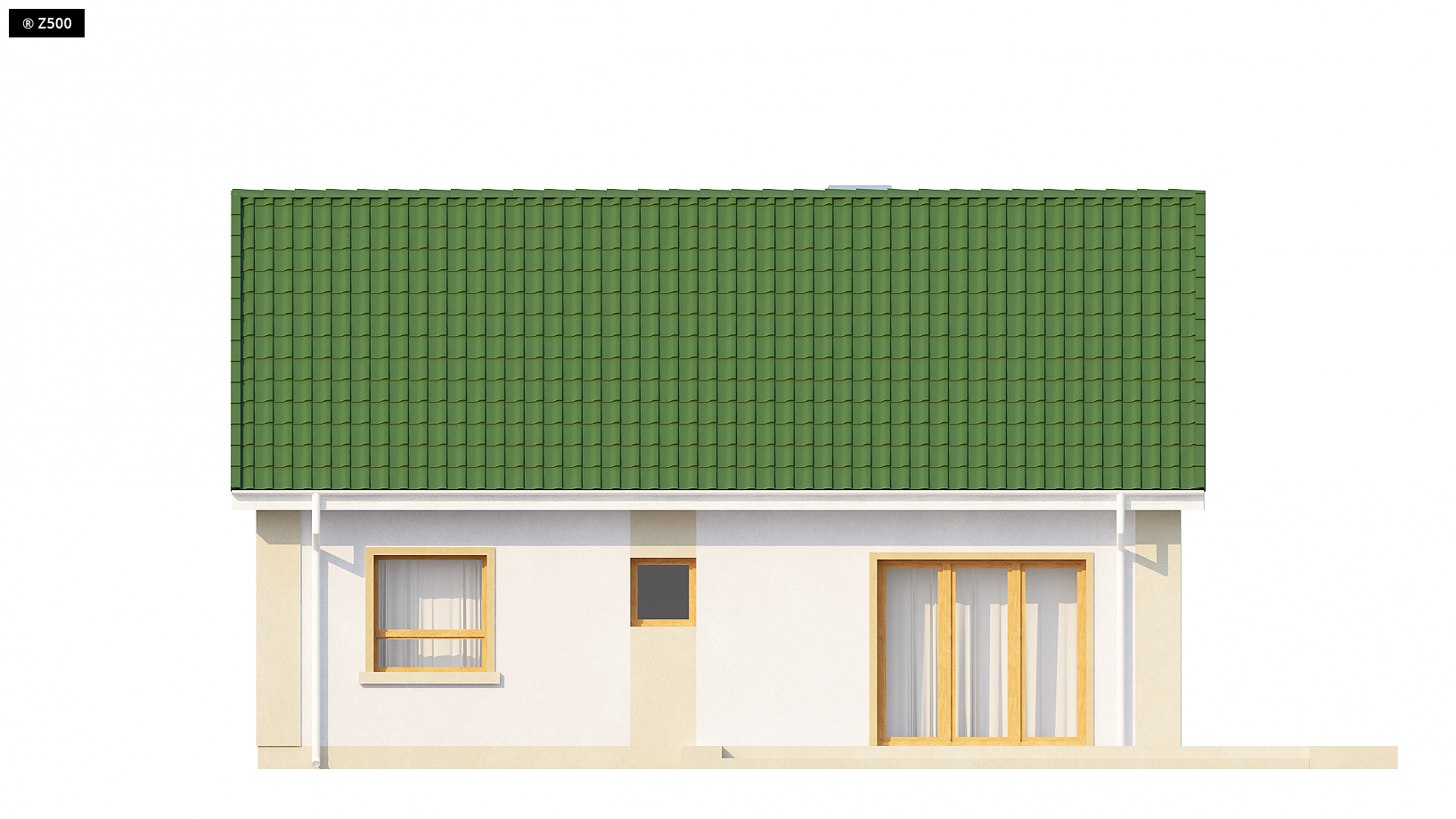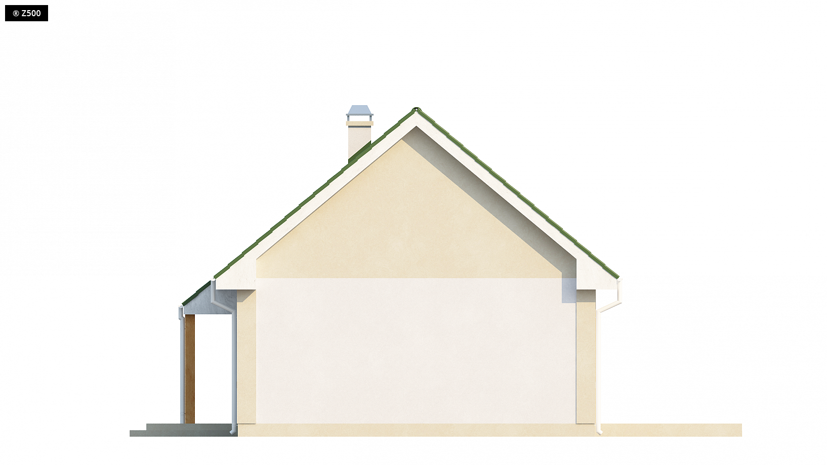 Wariant podstawowy z12 w technologii szkieletowej. Z12 D to zgrabny dom parterowy z opcją zagospodarowania poddasza. Prosta bryła oraz możliwością etapowania inwestycji czynią go tanią i ekonomiczną inwestycją. Konstrukcja oparta na ścianach zewnętrznych pozwala na dowolne kształtowanie wnętrza ściankami działowymi.Układ funkcjonalny zaplanowano na rzucie prostokąta. W sieni przewidziano miejsce na dużą szafę. Zlokalizowany niemal w środku hol wydziela strefy - dzienną w lewej części domu oraz mniejszą, nocną z dwiema sypialniami i łazienką. Pokój dzienny połączono z jadalnią oraz kuchnią. Przy wiatrołapie zaprojektowano spore pomieszczenie gospodarcze, które może być dostępne także z kuchni. Pozwoli to optymalnie zorganizować przestrzeń. Jeden centralnie umieszczony komin wpłynie na obniżenie kosztów i pozwali uprościć wykonanie nowoczesnych instalacji systemu ogrzewania kominkiem lub wykonanie płaszcza wodnego. Z12 to niezwykle uroczy i przyjemny w wyglądzie dom o dużych możliwościach aranżacji.