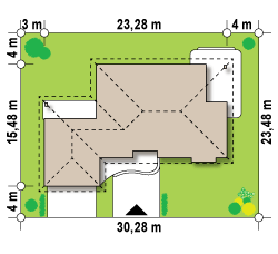 Dach: wielospadowy, nachylenie 30°, pokrycie z dachówki, blachodachówki