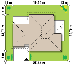Dach: wielospadowy, nachylenie 28°, pokrycie z dachówki, blachodachówki