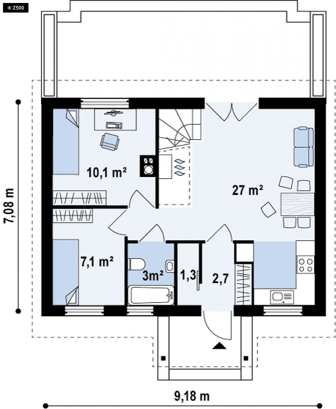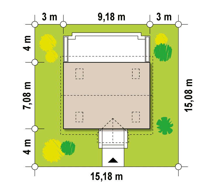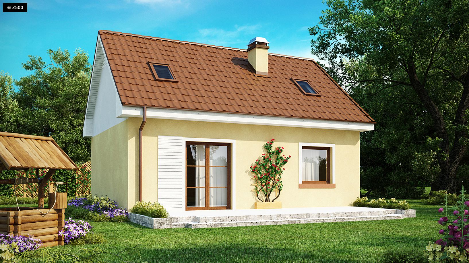 Projekt domu Z32 na pewno spodoba się tym, którzy szukają domu małego, taniego i funkcjonalnego. Wejście do budynku zostało osłonięte dwuspadowym zadaszeniem wspartym na słupkach. Na parterze część „dzienną” zagospodarowano optymalnie–w aneksie kuchennym (połączonym jedno przestrzennie z pokojem dziennym) wykonano ścianką tworzącą wnękę na lodówkę. W przeciwnym skrzydle budynku można wygospodarować miejsce nawet na dwa pokoje, łazienkę oraz małe pomieszczenie gospodarcze. Centralnie umieszczony komin pozwala zastosować ogrzewanie całego domu za pośrednictwem kominka. Istnieje możliwość powiększenia pomieszczenia gospodarczego poprzez przeniesienie łazienki w miejsce sąsiadującego z nim pokoju. Dzięki temu będzie można wykonać sporą kotłownie na biopaliwo. Na poddaszu zaprojektowano dwa niezależne pokoje i małą łazienkę tak, aby w niewielkim wnętrzu mogła zamieszkać nawet 4-5 osobowa rodzina. Standardowo budynek wyposażono w ogrzewanie elektryczne.