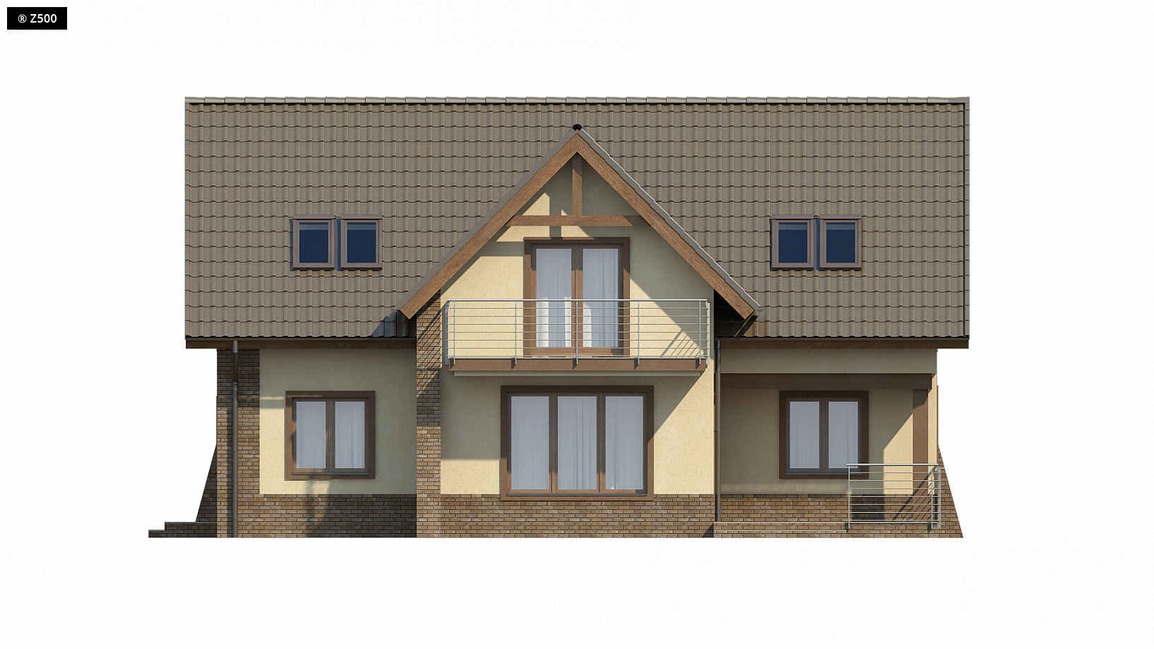 Z70 to funkcjonalny projekt domu z poddaszem użytkowym. Elementy z cegły, podwyższony cokół, skośne przypory nadają domowi charakterystycznego uroku. Zadaszone wejście do budynku prowadzi nas do sieni, a dalej do rozłożystej części dziennej, w której każda funkcja ma swoją przestrzeń. Kuchnia ze spiżarką sąsiaduje z jadalnią z odrębnym wyjściem na zadaszony taras. Salon z połączonym aneksem telewizyjno-kominkowym ma wejścia z eliptycznego holu, w którym znajdują się schody ze spocznikiem oraz z jadalni. W drugiej części domu znajduje się gabinet, pomieszczenie gospodarcze, garaż dwustanowiskowy, przy którym dodatkowo zlokalizowano schowek. Na piętro prowadzi centralnie zlokalizowana klatka schodowa. Znajdują się tam trzy pokoje, każdy posiada garderobę, jeden dodatkowo łazienkę. Ponadto jest tam główna łazienka, pokój gościnny, pokój DVD, pralnia, sauna i pomieszczenie rekreacyjne. Różne zakamarki, miejsca na szafy, sprawiają, że wnętrze jest praktyczne.