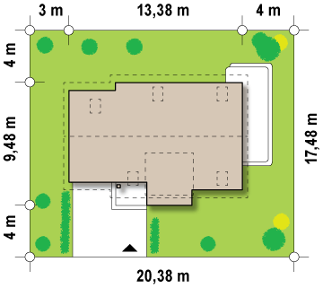 Dach: dwuspadowy, nachylenie 40°/8°, pokrycie z dachówki, blachodachówki