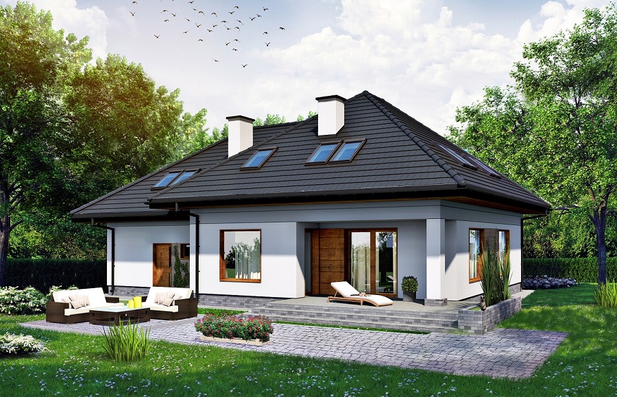 Dach: wielospadowy, nachylenie 37°, pokrycie z dachówki ceramicznej