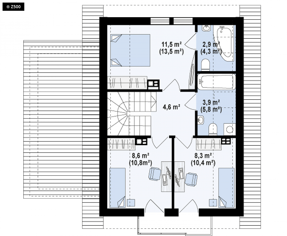 Dach: dwuspadowy, nachylenie 40°, pokrycie z dachówki, blachodachówki