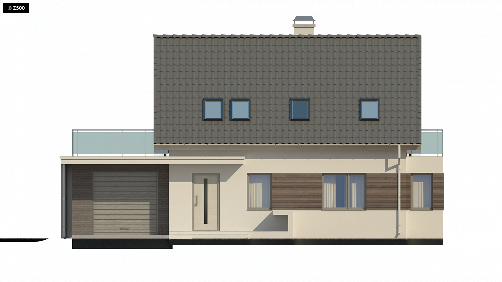 Z231 to propozycja domu o prostej bryle z dwuspadowym dachem. Starannie dobrane dodatki oraz drewniane elementy elewacji dodają mu walorów estetycznych. Na parterze znajduje się duży, jasny salon połączony z jadalnią i częściowo wydzielona kuchnia. Zlokalizowano tu również dodatkowy pokój, który może służyć jako gabinet albo pokój gościnny, oraz łazienkę z miejscem na prysznic. Z sieni jest bezpośredni dostęp do garażu jednostanowiskowego, na którego tyłach znajduje się spore pomieszczenie gospodarcze. Na piętrze umieszczono trzy duże sypialnie, garderobę oraz łazienkę, która pomieści zarówno wannę, jak i prysznic. Projekt Z231 to idealna propozycja dla osób lubiących innowacyjne,przemyślane rozwiązania. Jego niepowtarzalną formę i funkcjonalny układ pomieszczeń doceni każdy kto w nim zamieszka.
