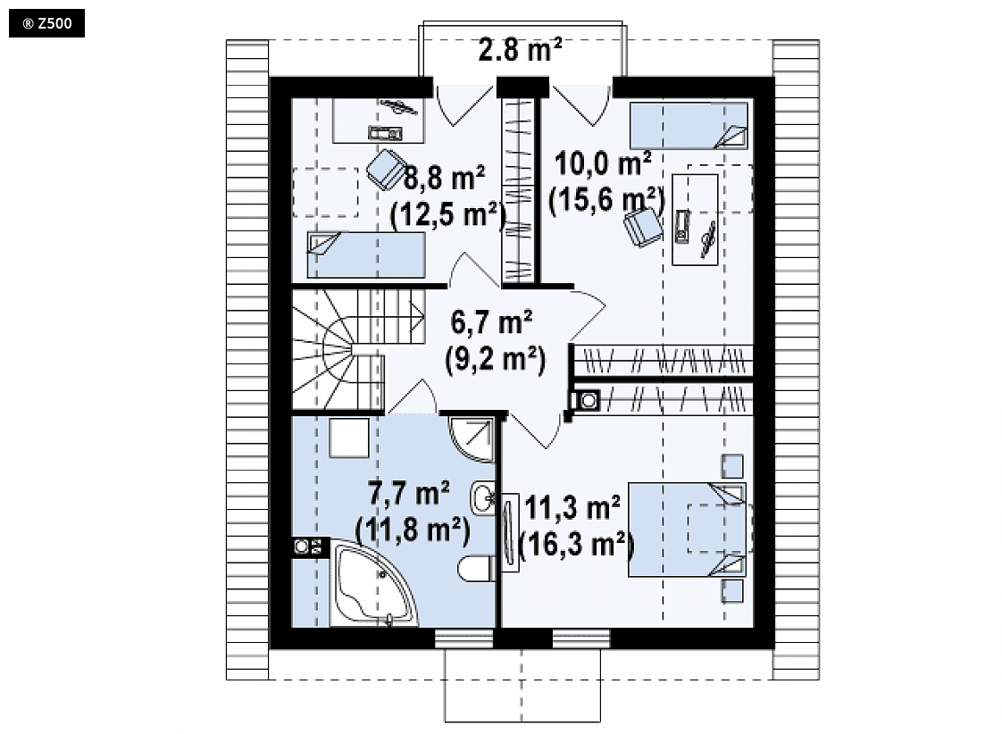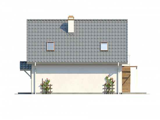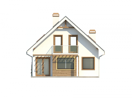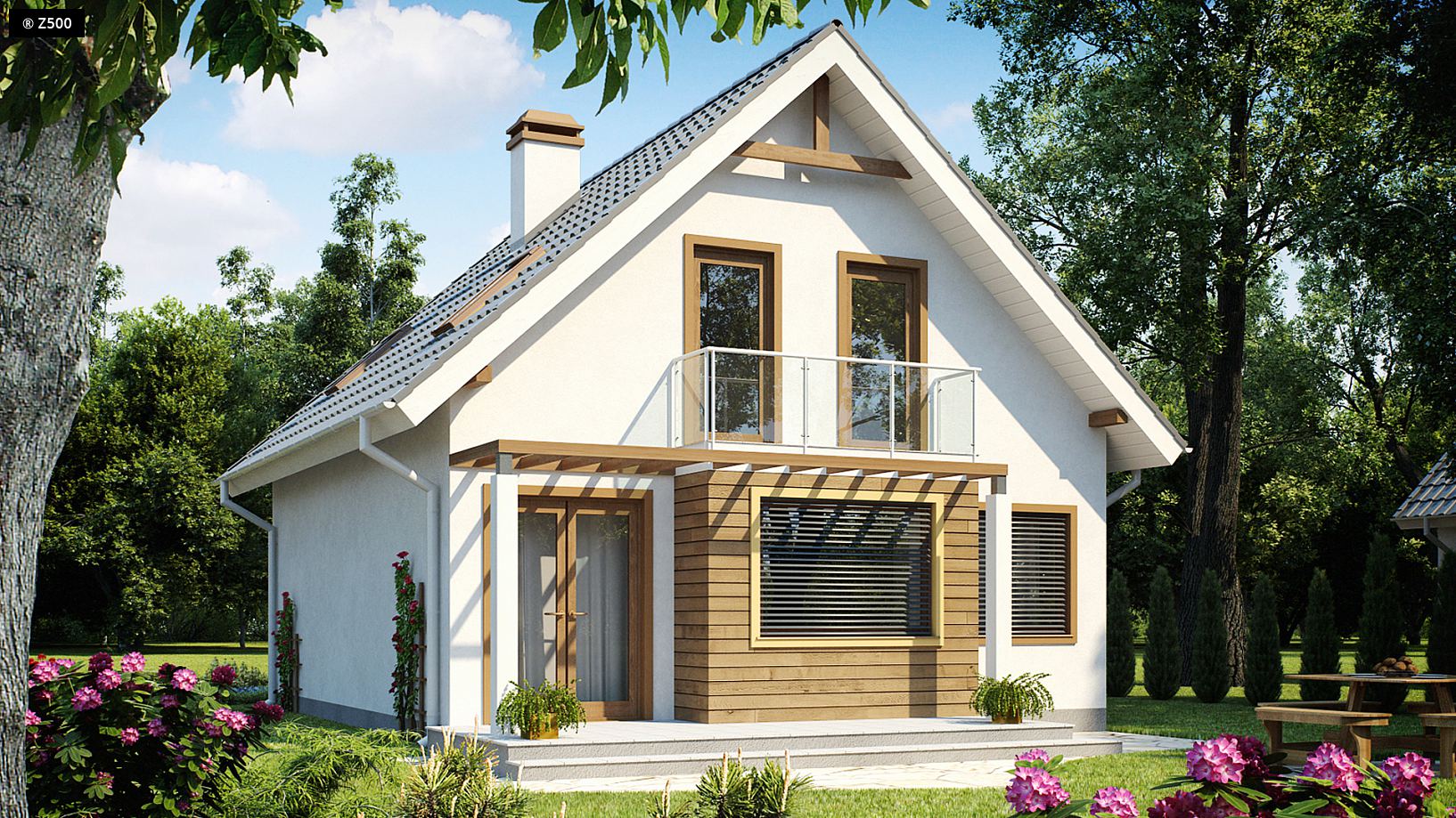 Z99 to projekt domu z poddaszem użytkowym. Współczesne wykończenie, poprzez wkomponowanie drewnianych elementów, spowodowało że dom nabrał ciekawego i niepowtarzalnego wyglądu. W sieni przewidziano miejsce na szafę. Dalej znalazł się hol, a także osobny pokój mogący służyć jako gościnny lub gabinet. Na wprost niego umieszczono łazienkę, przez którą przechodzi się do pomieszczenia gospodarczego. Dalsza część domu to salon połączony z jadalnią i otwarta kuchnia. Przy kuchni znajduje się spiżarka pozwalająca zachować porządek. Poddasze stanowi korytarz stanowiący ciąg komunikacyjny pomiędzy trzema sypialniami i łazienką. Wszystkie pokoje na poddaszu zostały doświetlone oknami połaciowymi oraz zaprojektowano w nich miejsce na szafy wnękowe. Ponadto dwie sypialnie zostały wyposażone w wyjście na wspólny balkon znajdujący się od strony ogrodu. Z99 to prosta bryła, z dachem dwuspadowym która wpływa na ekonomiczność podczas realizacji projektu.