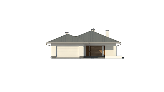 Z367 Największą jego zaletę stanowi powierzchnia do 100 m2, dzięki czemu może być domem MDM. Budynek przykryto dachem wielospadowym, do wykończenia elewacji użyto białego tynku i elementów ozdobnych w postaci drewna lub jego imitacji. Współczesna bryła, dwustanowiskowy garaż, portfenetrowe okna doświetlające wnętrza – to tylko niektóre z atutów projektu Z367. Dom podzielono na część dzienną i nocną.W sieni znajduje się garderoba, w sam raz na płaszcze i zimowe kurtki. Salon zaprojektowano na planie kwadratu w celu zwiększenia funkcjonalności i ustawności, a kominek aby dodawał domowi ciepła i przytulności. Kuchnię oddzielono od salonu ścianką działową, którą można usunąć dzięki czemu zyskamy dużą powierzchnię salonu i aneksu kuchennego. „Po sąsiedzku” wygodna i użyteczna spiżarka. Oprócz podstawowej łazienki dla wszystkich domowników, dodano toaletę dla gości, która sąsiaduje z salonem. Lewa część domu to 3 pokoje mogące być sypialniami, gabinetami lub pokojami dziecięcymi. Projekt domu Z367 dedykowany jest dla osób ceniących widne i ustawne pomieszczenia.