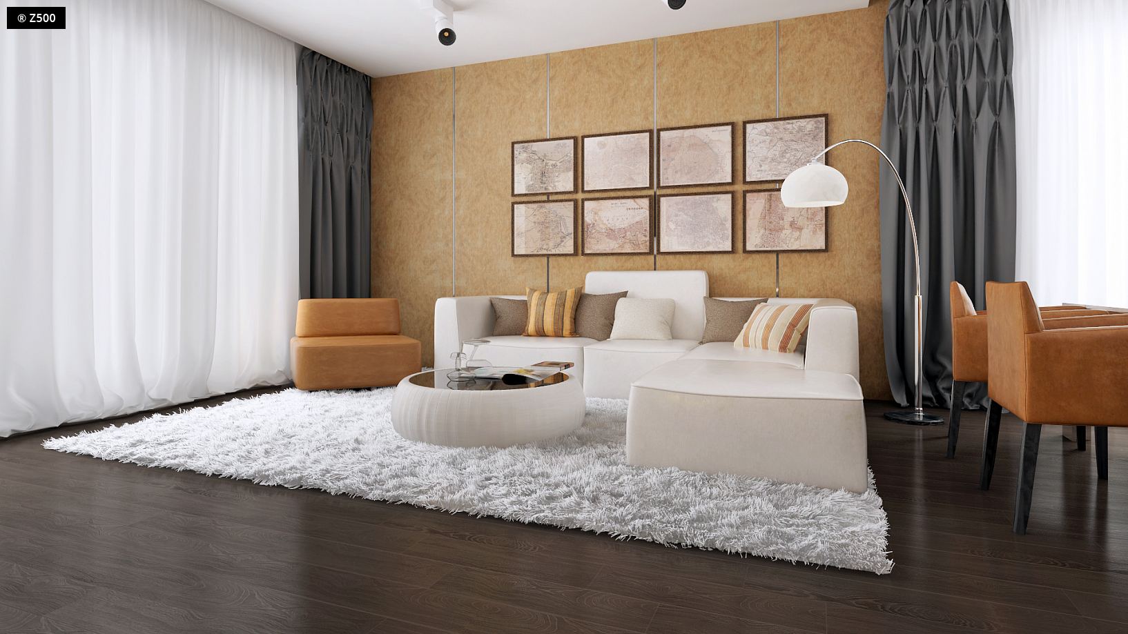 Projekt Z203 to funkcjonalny dom z trzema sypialniami i nieużytkowym poddaszem. Prostą, zgrabna bryłę urozmaica wysunięty od frontu garaż. Ostateczny charakter elewacjom nadaje wykończenie z drewna i okładziny klinkierowej. Bogaty program użytkowy rozwiązano wyłącznie na poziomie parteru. Główną zaletą projektu jest dwustanowiskowy garaż z dużym pomieszczeniem gospodarczym, które w razie potrzeby można dodatkowo powiększyć kosztem garderoby. W sieni i holu przewidziano miejsce na szafy i funkcjonalną garderobę. Strefa dzienna to kuchnia z podręczną spiżarnią otwarta na przestronny salon oraz aneks jadalny. W centrum zaplanowano kominek. Z salonu i jadalni można wyjść na zadaszony taras. Strefę nocną zlokalizowano w lewej części domu. Jest ona wyraźnie oddzielona, co zapewnia domownikom komfort i intymność. Są tu 3 wygodne sypialnie oraz łazienka z oknem. W każdej sypialni jest miejsce na dużą szafę Z pokoju gospodarzy jest także wyjście na zadaszony taras.