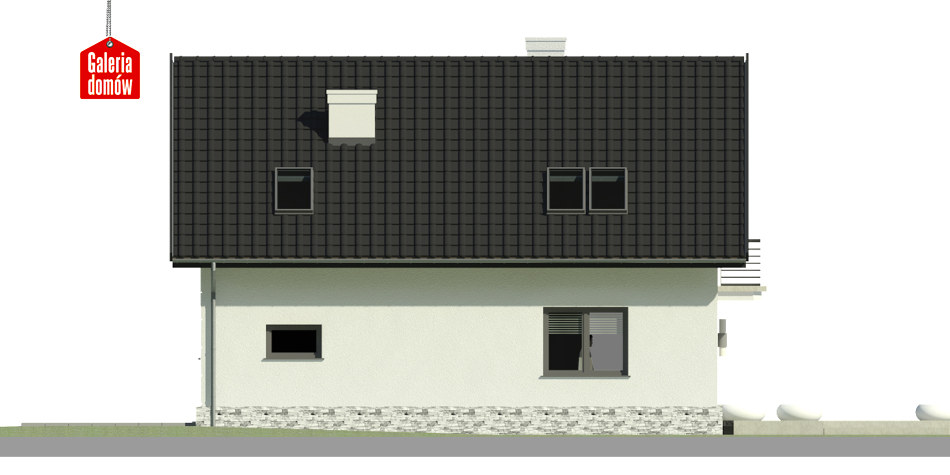 Dach: dwuspadowy, nachylenie 40°, pokrycie z dachówki ceramicznej lub betonowej
