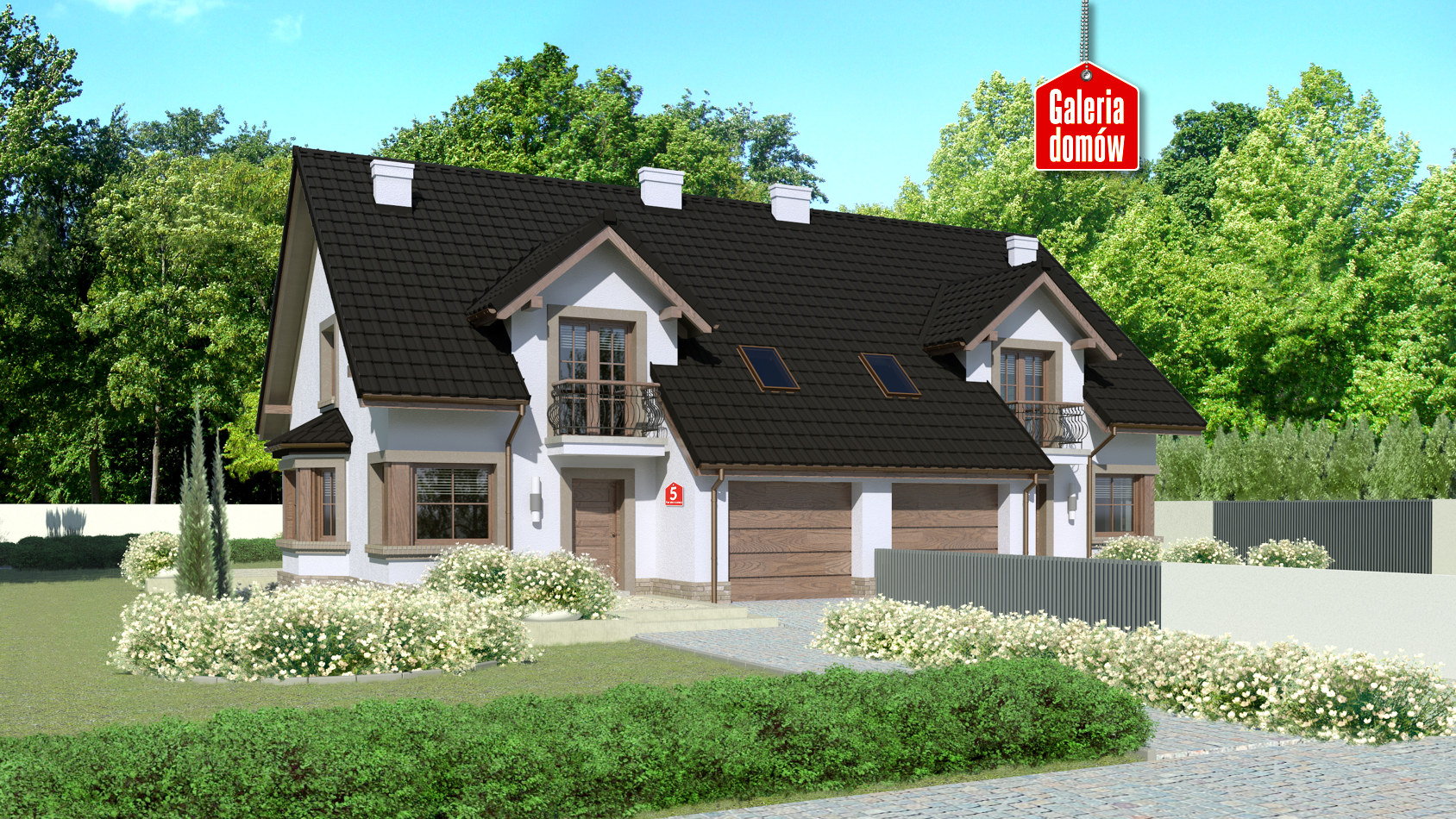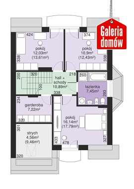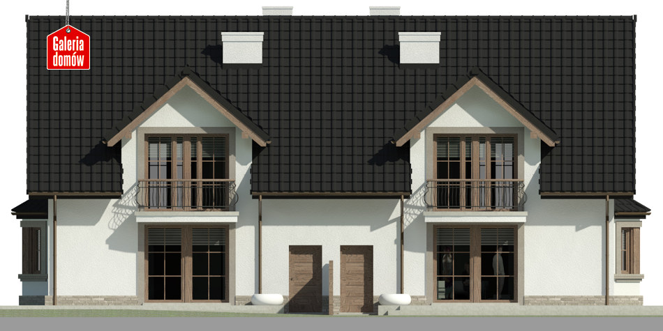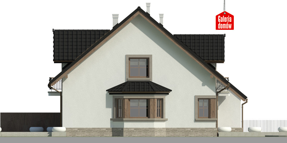 Dach: dwuspadowy, nachylenie 40°, pokrycie z dachówki ceramicznej lub betonowej