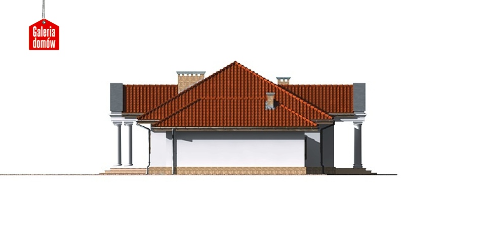 Klasyczna bryła jednorodzinnego domu parterowego cechująca projekt gotowy Dom przy Akacjowej pozwala na funkcjonalne rozplanowanie wnętrza. Centralnie zlokalizowany pokój dzienny oddziela strefę sypialna z trzema pokojami oraz łazienka od części dziennej z kuchnią, pokojem gościnnym, łazienką i kotłownią. Garaż jednostanowiskowy z pomieszczeniem gospodarczym połączony został z budynkiem przewiązką.