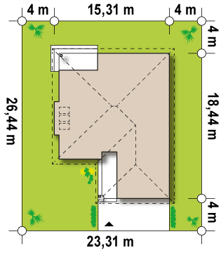 Dach: wielospadowy, nachylenie 25°, pokrycie z dachówki, blachodachówki