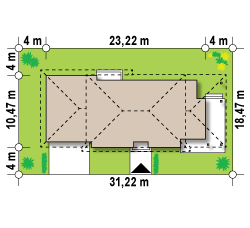 Dach: wielospadowy, nachylenie 22°/16°, pokrycie z dachówki, blachodachówki
