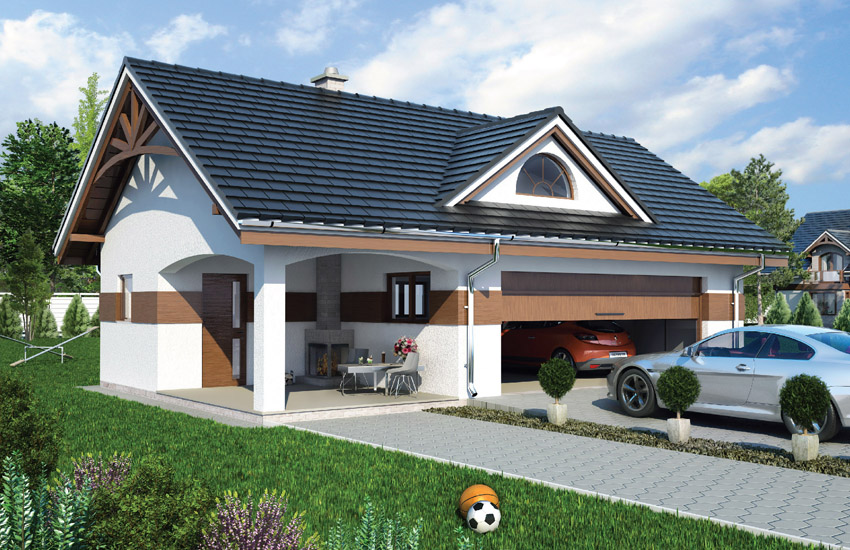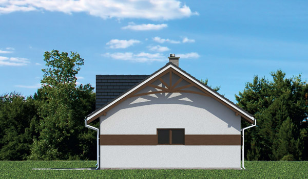 Dach: dwuspadowy, nachylenie 34º, pokrycie z dachówki ceramicznej
