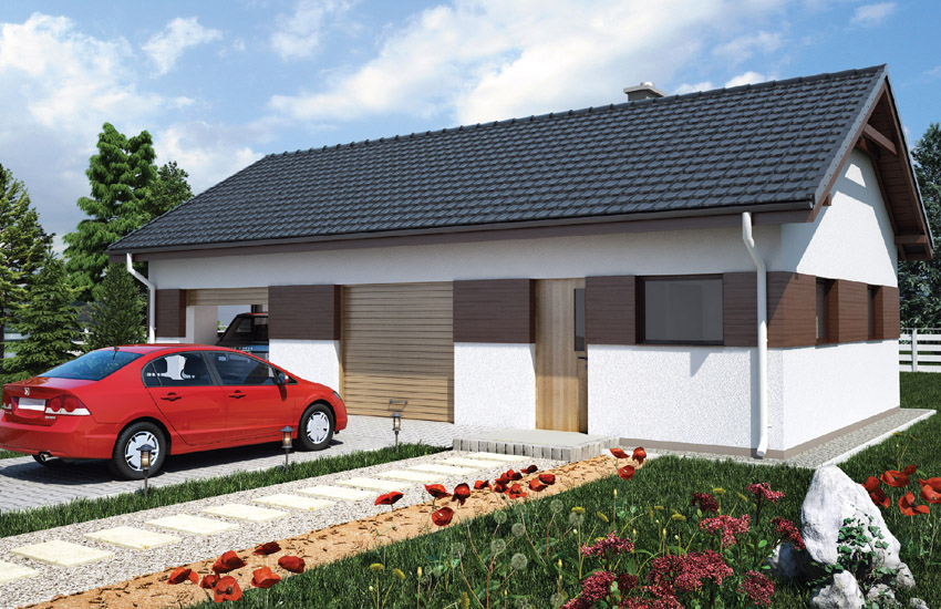 Dach: dwuspadowy, nachylenie 30º, pokrycie z dachówki ceramicznej